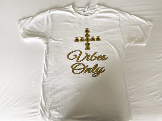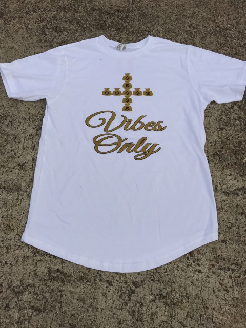 “Positive Vibes Only” Curved Hem T-Shirt.WILL SHIP OUT 1-2 DAYS. We appreciate your business and support